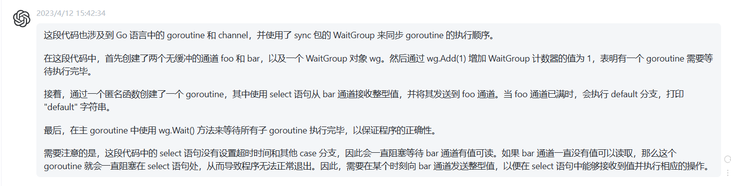 不知道大家看懂没有?于是,最后来了一个例子验证你是否理解了:为什么每次都是输出一半数据,然后死锁?(同样,这里可以运行查看结果:https://play.studygolang.com/p/zoJtTzI7K5T)